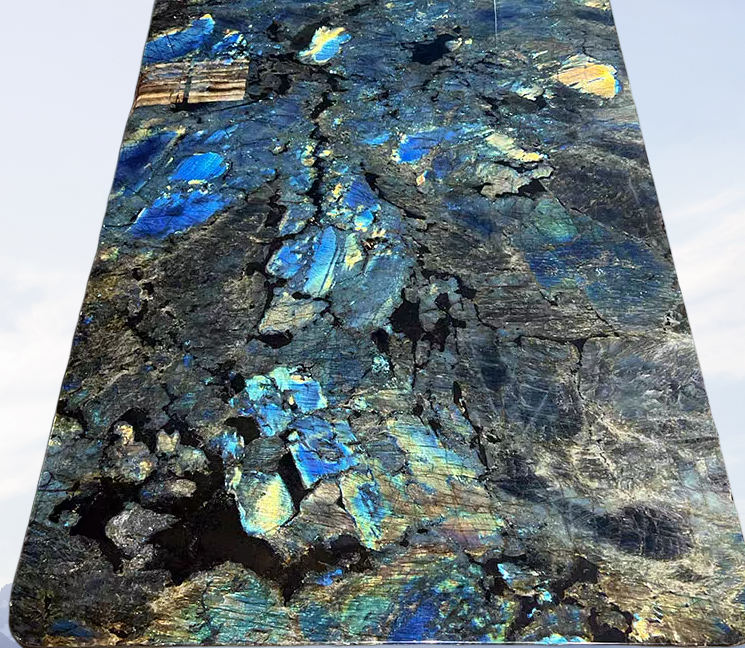 “我有一个一又友在马达加斯加就领有一个拉长石矿山产权,但一经第一次听蓝翡翠这个名字,可能是比年来国内建材商为了营销或餍足客户需求起的俗名,昔时一直叫拉长石。”平实向南边日报记者坦言,咫尺建材市集鱼龙搀和。纹路和激情多,确认矿物身分复杂。宝玉石级的硬度才能到6以上,结构和身分复杂的唯有3—4,跟大理石的硬度差未几。拉长石因其层状结构不褂讪、易裂,还要用胶水粘接成型后才能切板。十分是比拟大块的,加工和安设工艺条件很高。