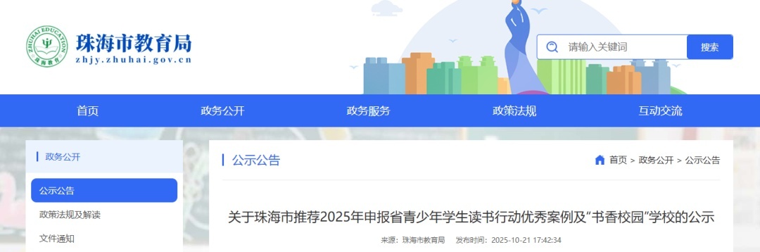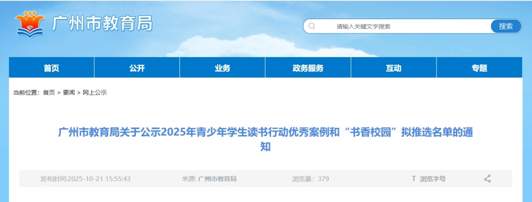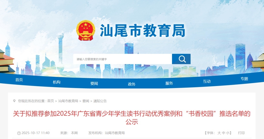 好音尘!广州、珠海、汕尾不时公示了拟保举插足2025年广东省青少年学生念书步履的优秀案例和“书香校园”推选名单,一批学校上榜!全部来看确定~